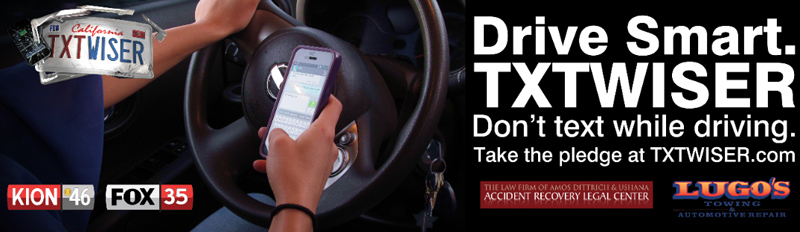 Ads for the TXTWISER campaign by KION were made and placed on the Monterey-Salinas Transit Buses. Ads required photo editing and included a TXTWISER message and logos from by local businesses. A side ad was created along with a tail ad.